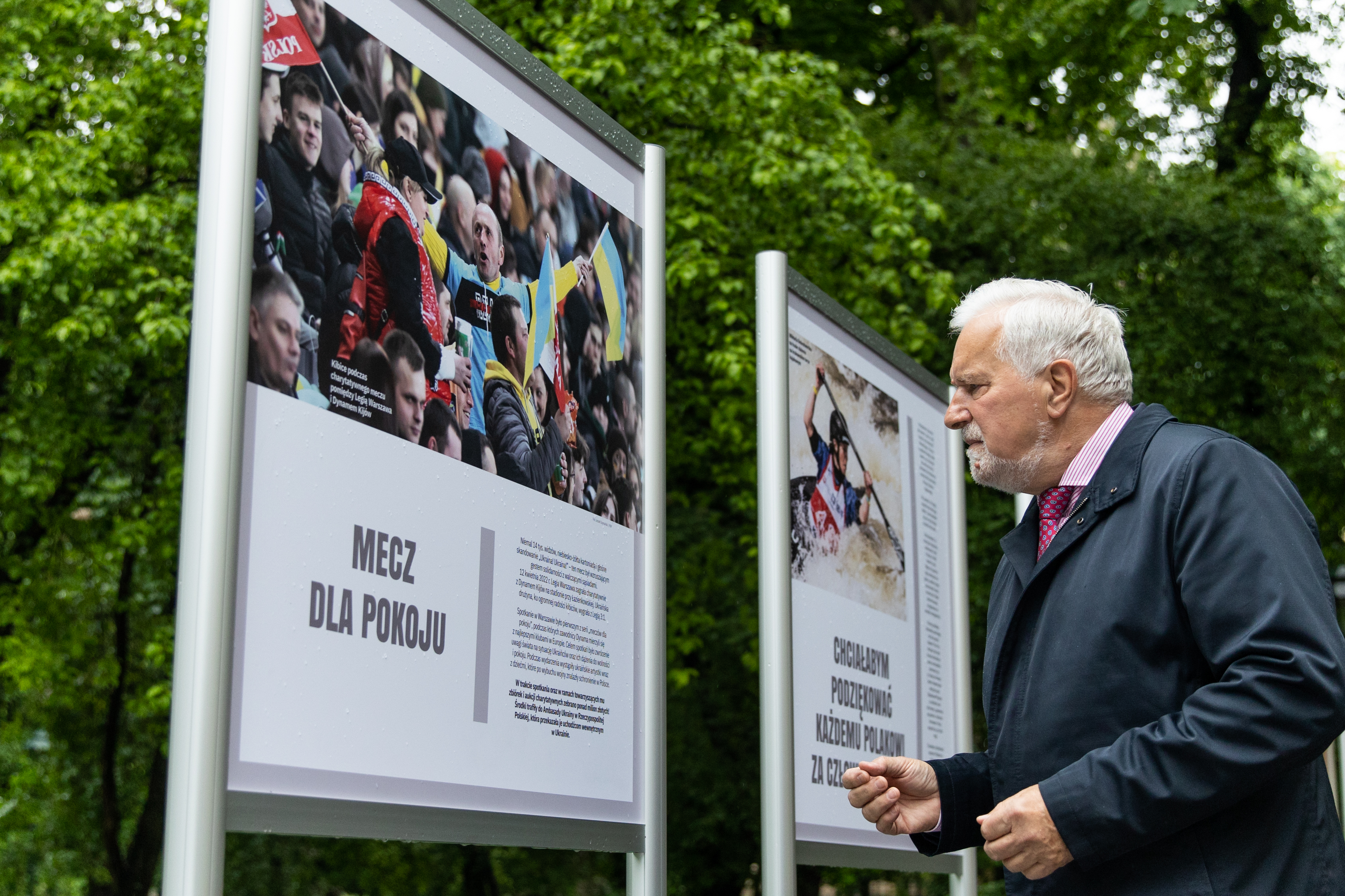– Wystawa na krakowskich Plantach pokazuje fenomen na pierwszy rzut oka mało istotny w kontekście wojny: relacje polsko-ukraińskie w świecie sportu. Jestem jednak przekonany, że pokazując solidarność Polaków z uchodźcami z Ukrainy, stawiamy opór okrucieństwu i agresji. Miliony ludzi przechodziły przez Polskę, wielu z nich zamieszkało w naszym kraju i zostało gościnnie przyjętych. Uchodźcy są zwykle umieszczani w obozach – a my przyjęliśmy ich do swoich domów. Nigdzie na świecie nie zdarzyło się, by samorządy, indywidualni obywatele oraz różnego rodzaju organizacje pozarządowe zjednoczyły się na tak długo. I to mimo trudnej historii między Polską a Ukrainą – mówi Kazimierz Barczyk, przewodniczący Stowarzyszenia Gmin i Powiatów Małopolski oraz Federacji Regionalnych Związków Gmin i Powiatów RP.
