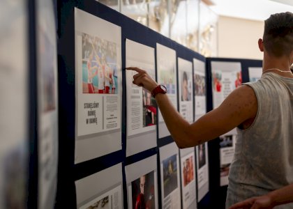 Wystawa „Maraton solidarności. Polski sport dla Ukrainy” cieszyła się ogromnym zainteresowaniem. Postawiliśmy ją w korytarzu przy wejściu. Trwały dni otwarte, więc nie tylko nasi uczniowie, ale też uczniowie szkół podstawowych, różni interesanci, którzy do nas przychodzili, mieli okazję obejrzeć wystawę. Chętnie zapoznawali się z treściami na temat sportowców oraz z ideą połączenia dwóch światów: wojny i pokoju.