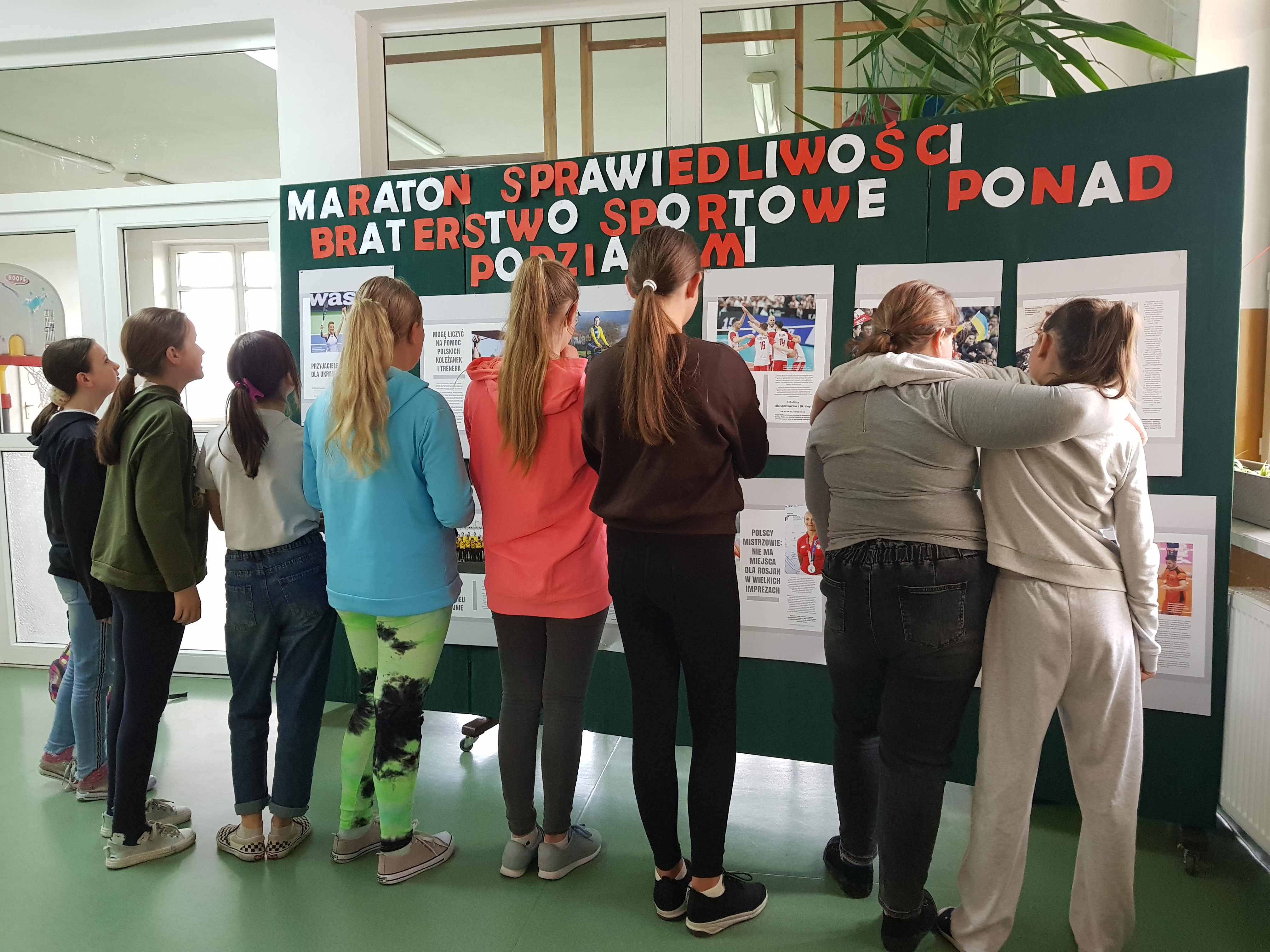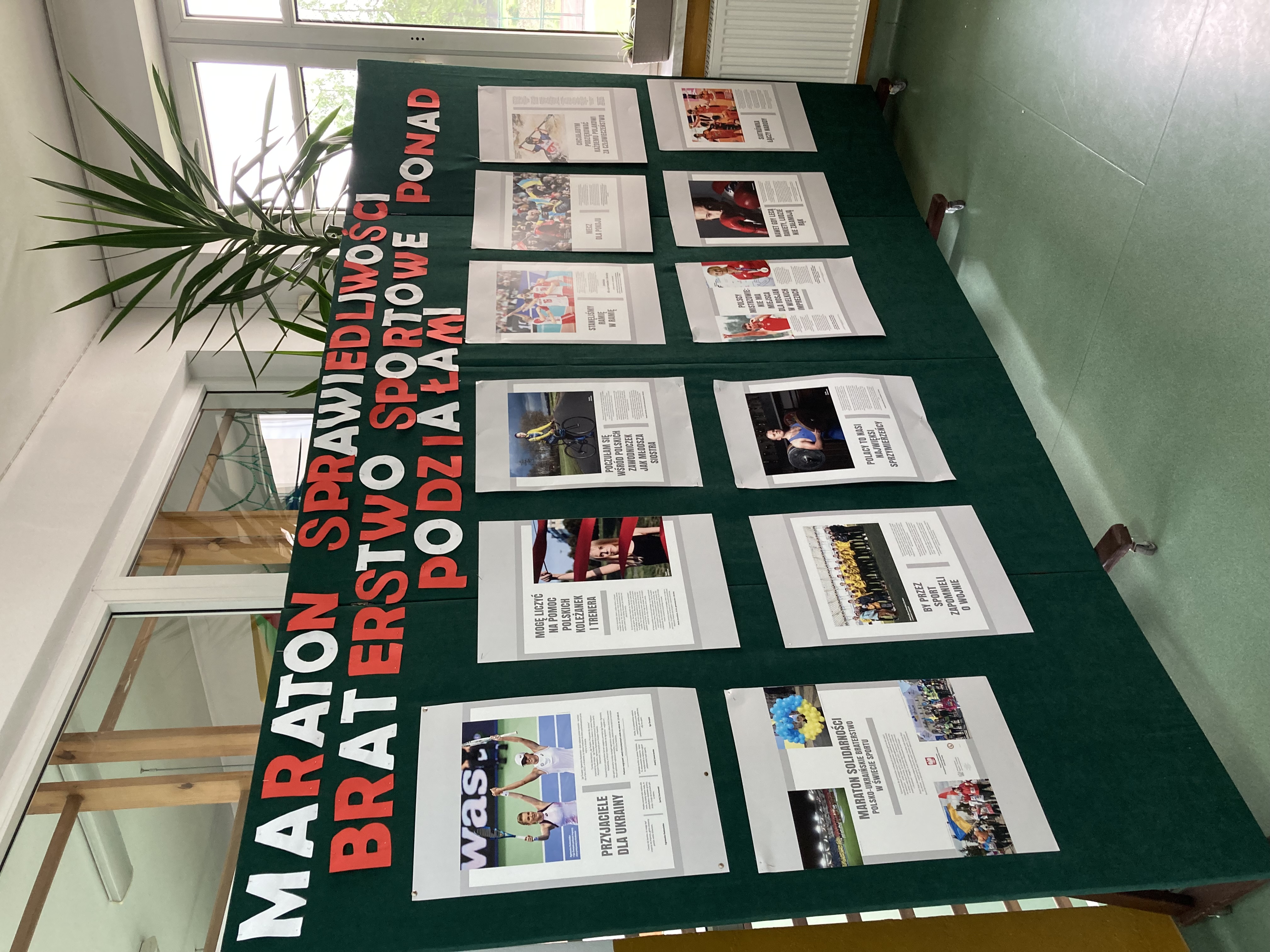 Wystawa „Maraton solidarności. Polski sport dla Ukrainy” pojawiła się u nas, kiedy prowadziliśmy spotkania i wywiadówki z rodzicami. Zarówno uczniowie, jak i ich rodzice byli nią zainteresowani. Taka forma ikonograficznego przekazywania informacji jest bardzo przydatna. Jestem wielką zwolenniczką tego typu wystaw, o ile prezentują nowe, ciekawe treści, a nie powielają te pojawiające się w przestrzeni publicznej. Jeśli to są powszechnie znane hasła, wystawa nie zadziała. Choćbym nie wiem ile ich wywiesiła, uczniowie przejdą obok i nie zareagują. Tutaj chętnie czytali o sportowcach, bo to były historie konkretnych ludzi, o których wcześniej nie słyszeli. Piękne zdjęcia też przyciągały uwagę.