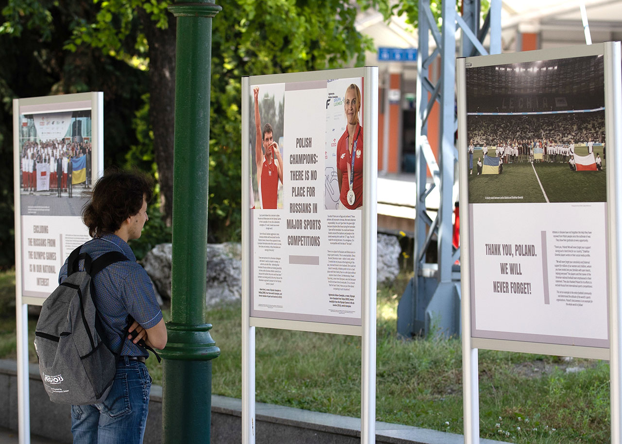 – Wystawa ma ponadczasowy i symboliczny wymiar. Pokazuje w wymowny sposób, że sport łączy narody, jednoczy zawodników we wspólnych wartościach. Na planszach widzimy zarówno świadectwa pomocy udzielonej sportowcom ukraińskim przez całe sportowe środowisko Polski po rosyjskiej agresji na Ukrainę, jak i przykłady głośnego sprzeciwu wobec obecności Rosji na międzynarodowych imprezach – mówi Marcin Nowak, prezes spółki Igrzyska Europejskie.